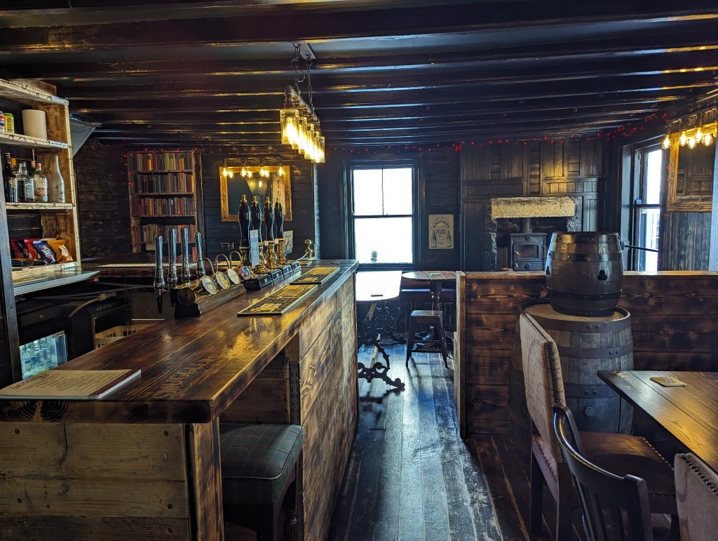 Our top bar has seating for 30 people with a more relaxed atmosphere. Cosy, with a log burner and original beamed ceiling.